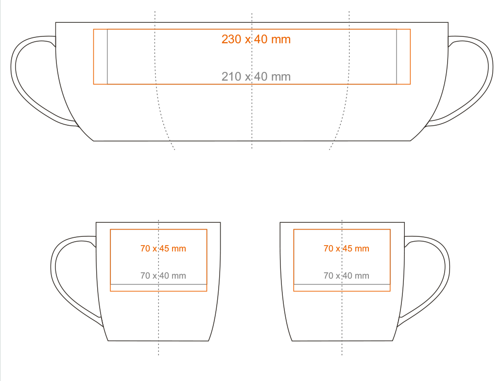 * W przypadku projektów wybiegających poza standardową powierzchnię nadruku prosimy o kontakt z działem handlowym.